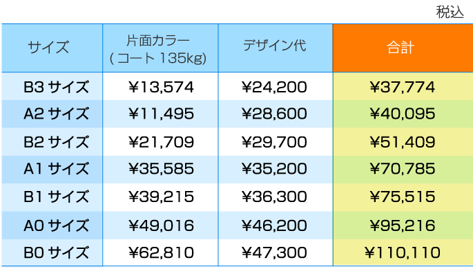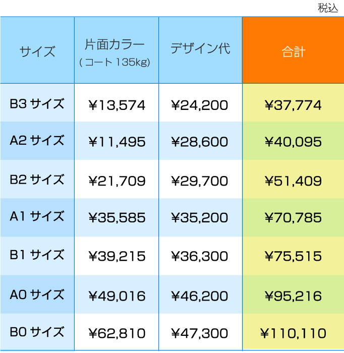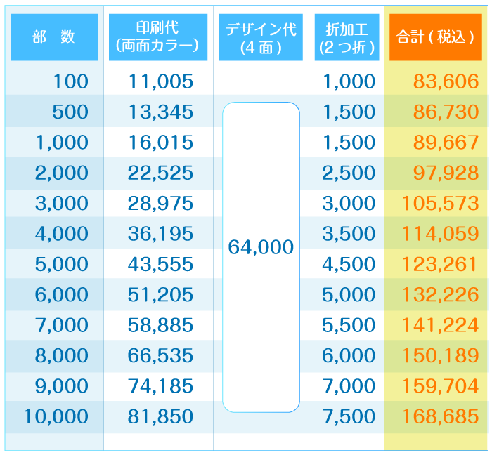 【仕上がりA4サイズ コート110k 印刷7営業日の場合】下記合計は税込金額です。